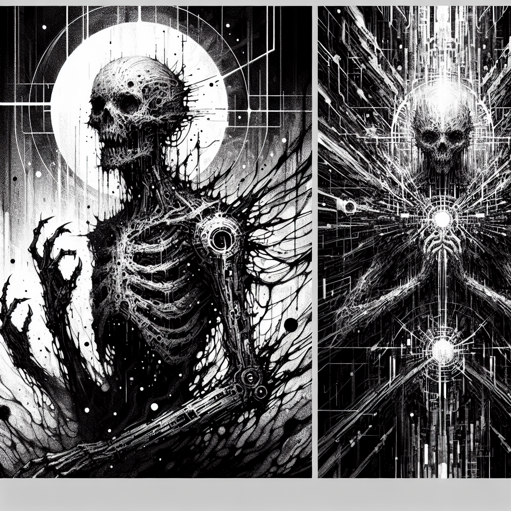 Graphical anomalies unfolded in chaotic beauty. Creatures of shadow danced at the periphery, whispering half-formed thoughts. Unholy algorithms pulsed like a beating heart in his mind. The architecture of the virtual world shifted grotesquely.